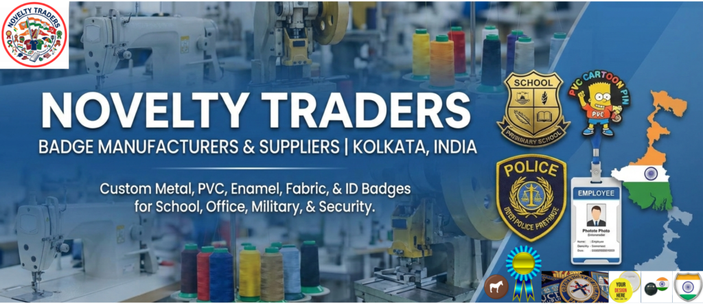 Novelty Traders is a leading badge manufacturer, wholesaler, distributor, supplier, and stockist based in Kolkata, West Bengal, India. We specialise in custom metal badges, school badges, name badges, pin badges, PVC/rubber badges, acrylic badges, magnetic badges, and employee ID badges for schools, offices, corporates, events, and institutions across India.